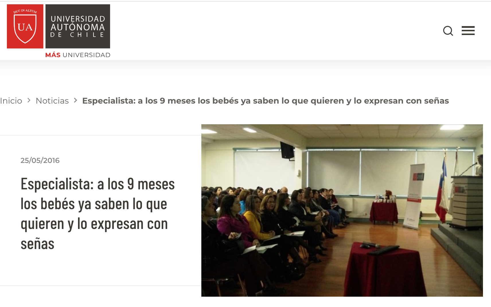 Más de 30 años de estudios, entre ellos los de la Pontificia Universidad Católica, postulan que las bases del lenguaje se sentarían antes del año, confirman que el uso del lenguaje gestual aumenta las frecuencias gamma responsables del raciocinio y la comprensión, facilitando recepción y la expresión de información. Los niños de 2 años hablan como niños de 3, con mayor cantidad de palabras y frases. Los niños del primer estudio fueron testeados a los 8 años mostrando un 10% más de desarrollo Cognitivo que los niños que no habían hecho señas.